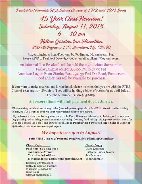 3. Your 2018 Joint Reunion Committee: CLASS OF 1972: Paul Fort (#4 above), Barbara (Morgan) Kloss (#6 above), Margaret (Sendbo) Fort (#5 above)