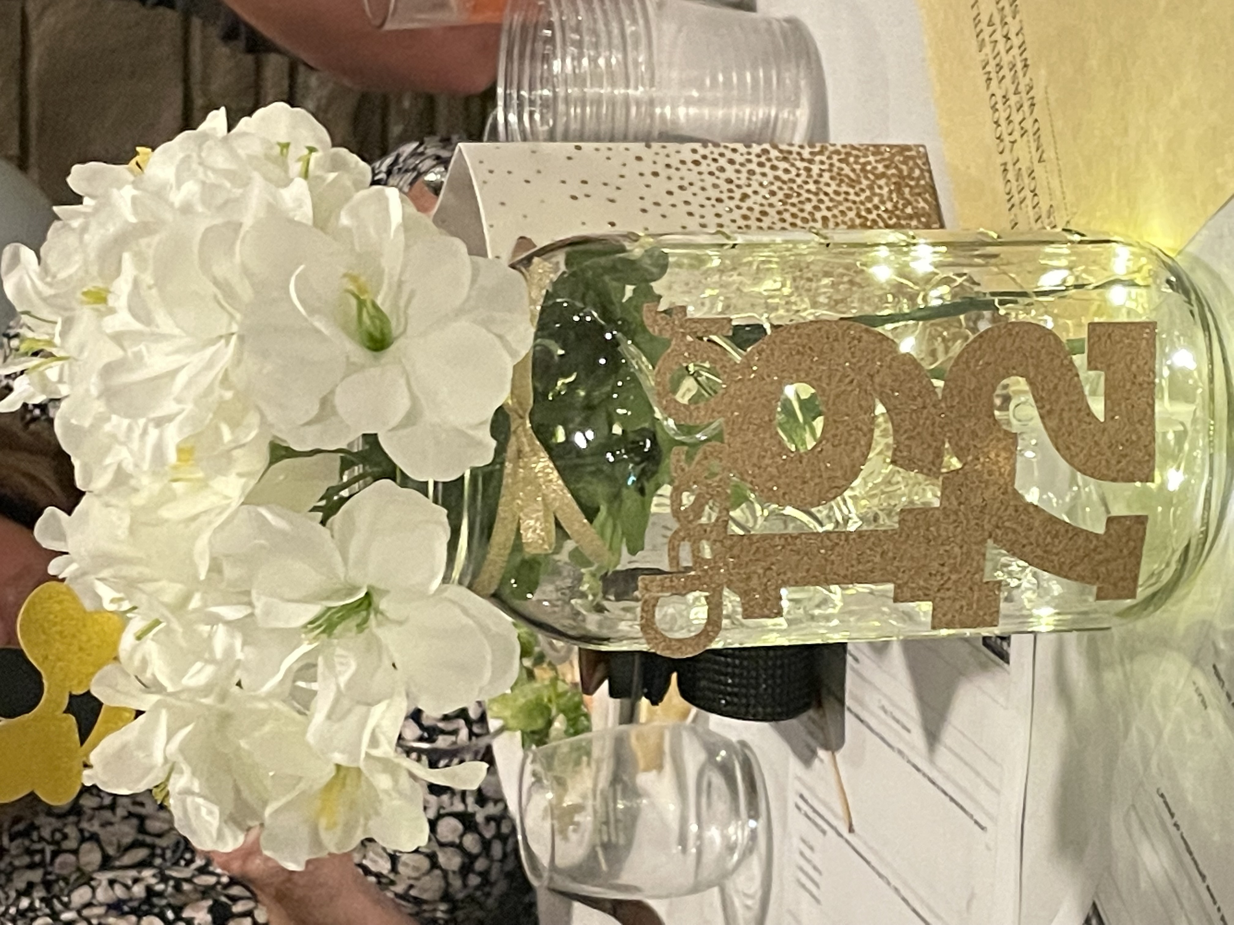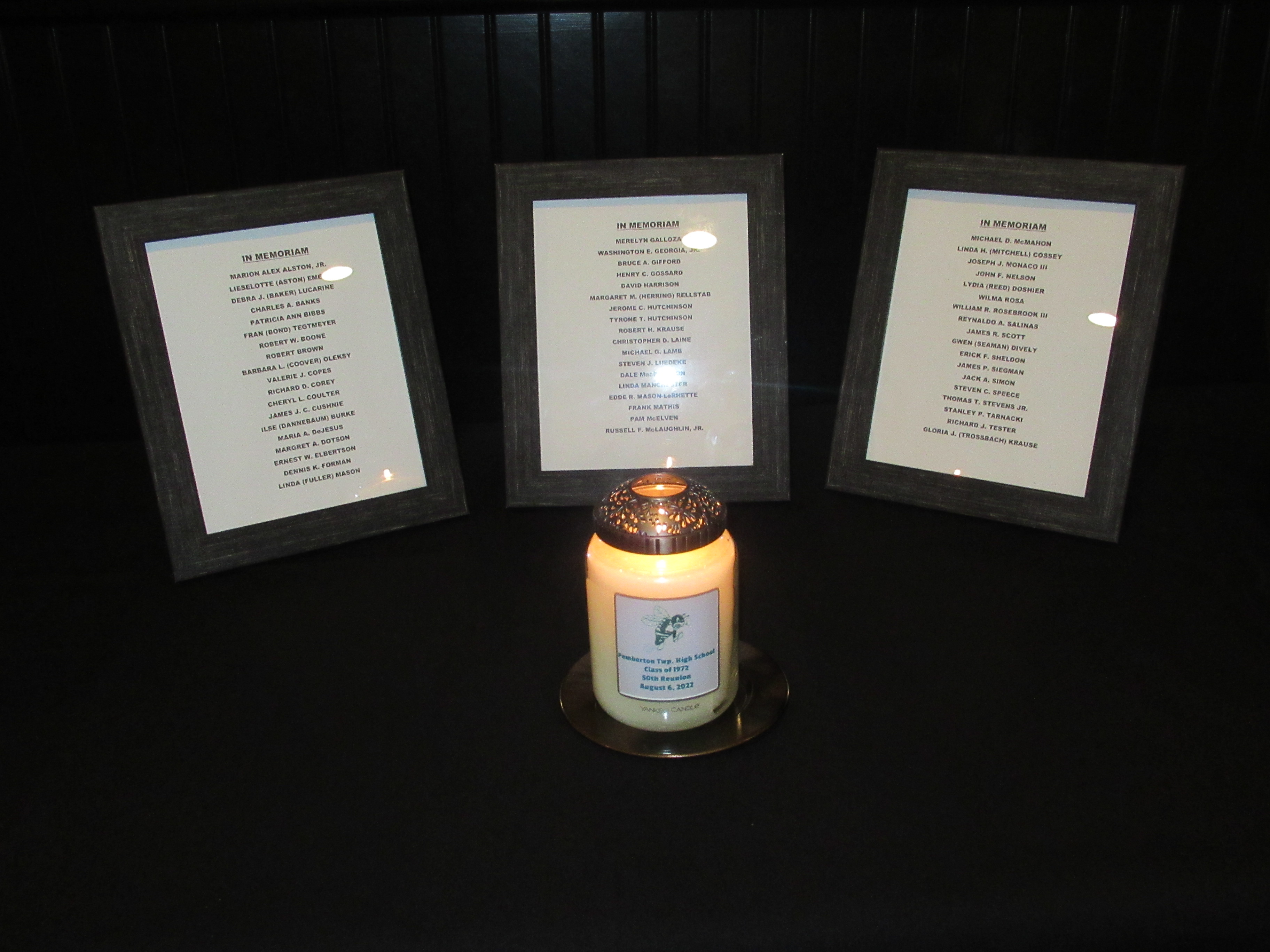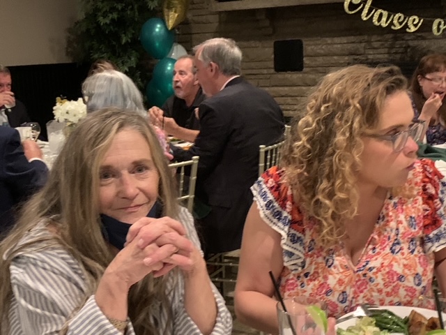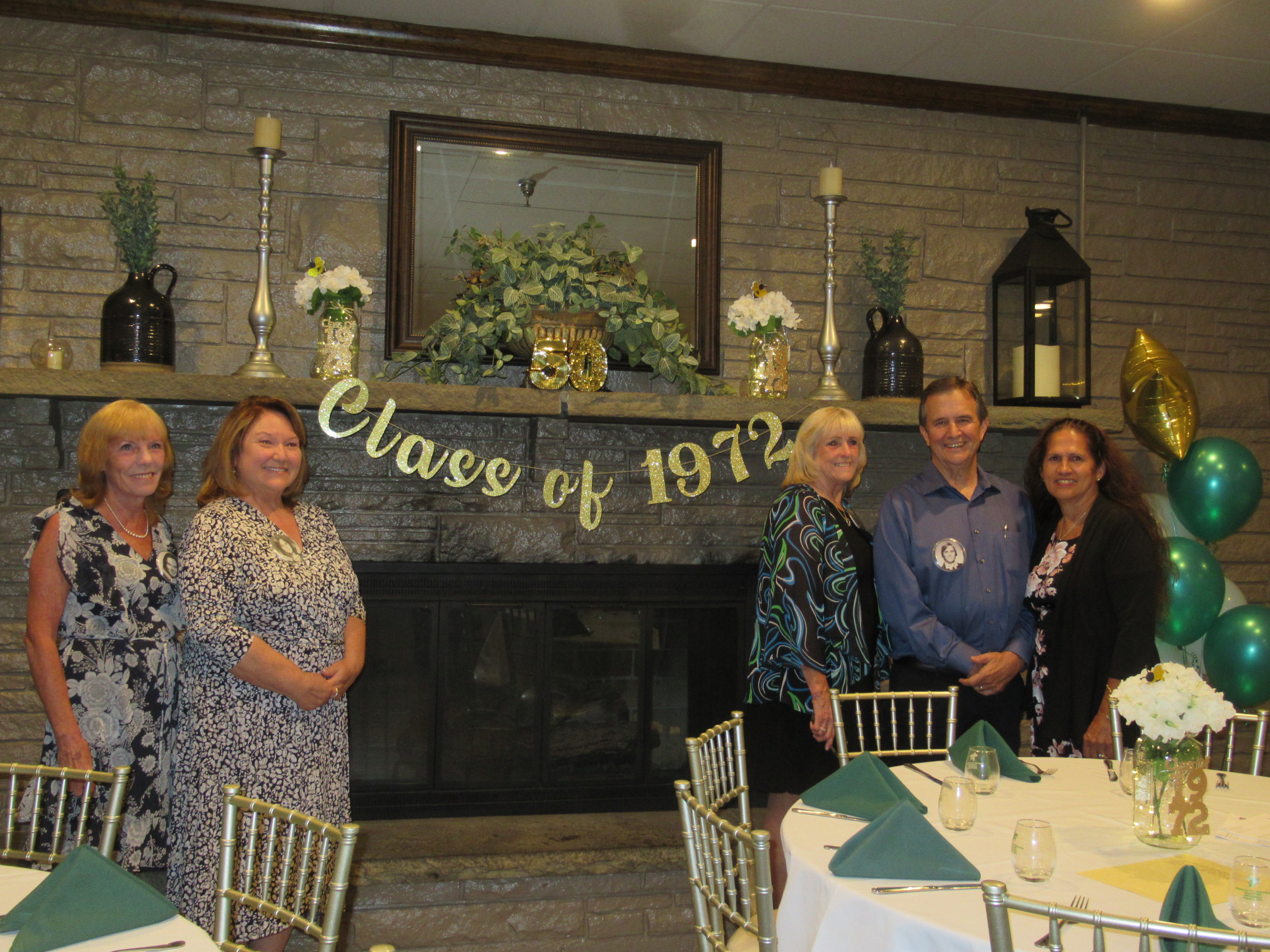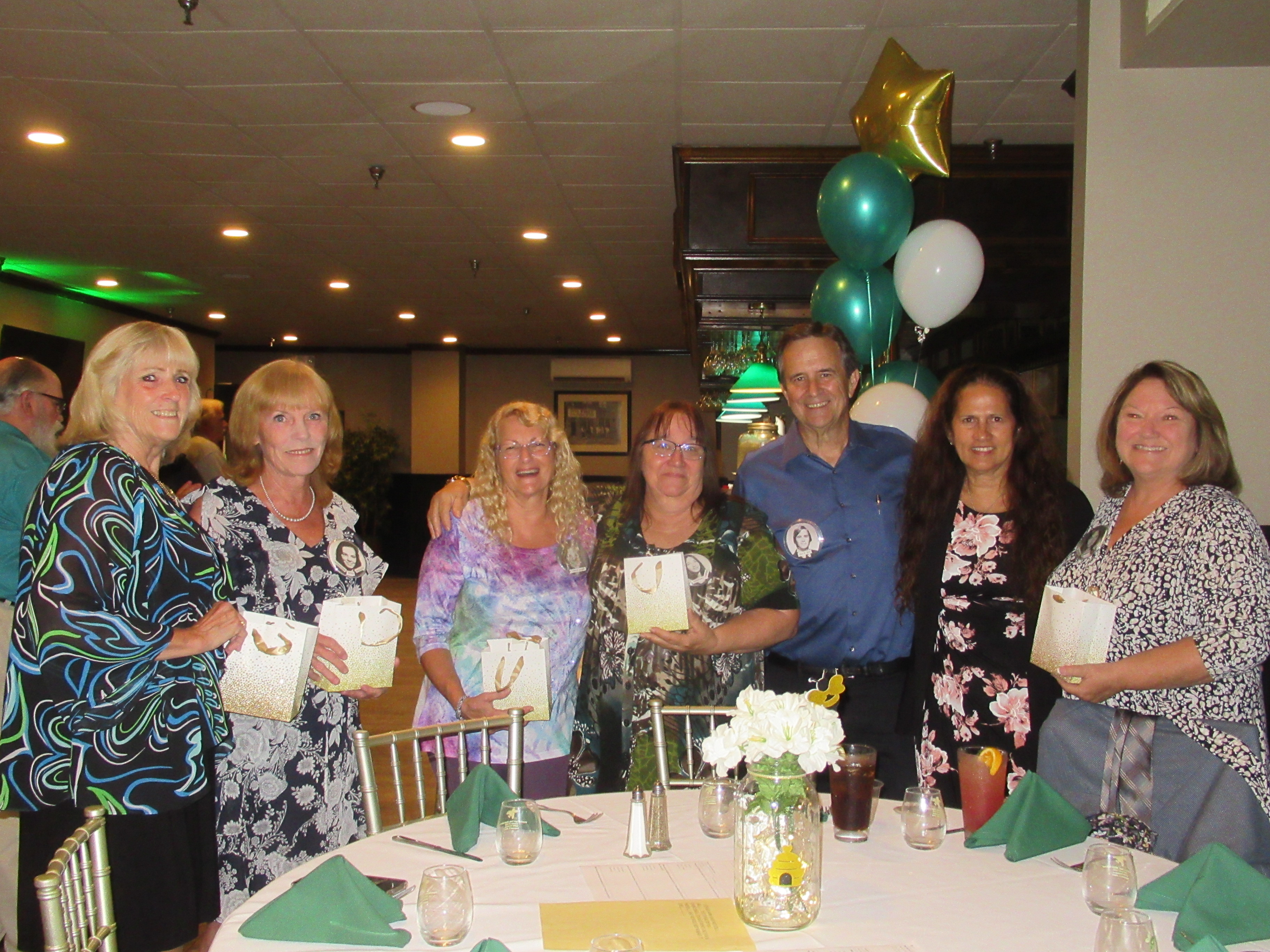 4. Committee displaying their plaques: Barbara (Morgan) Kloss, Catherine (Nye) Pullion, Paul Fort, Margaret (Sendbo) Fort, Cathy (Templeton) Placenti